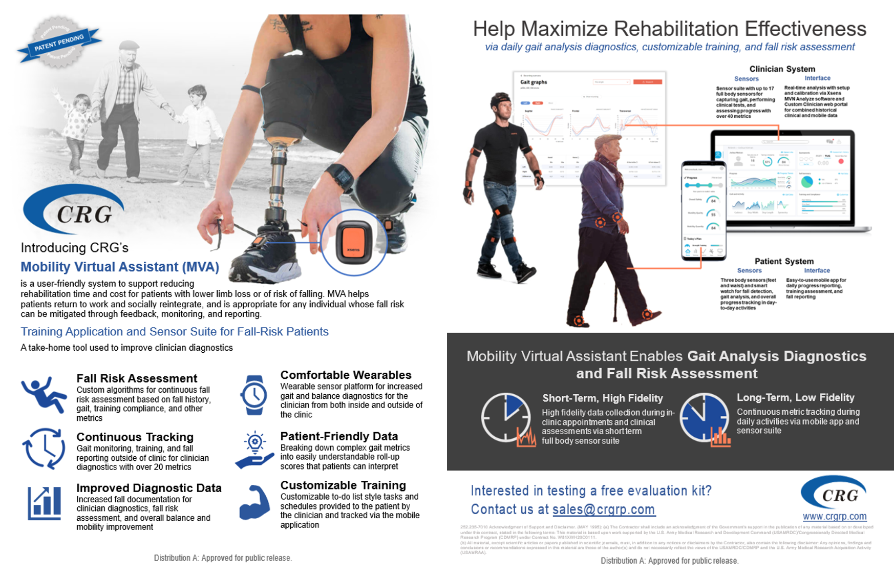 CRG’s team developed the Mobility Virtual Assistant (MVA) – a wearable sensor system aids patients with lower limb amputations or mobility issues. It includes a smartphone app for patients to monitor gait quality and balance, and a web app for clinicians to track patient progress.